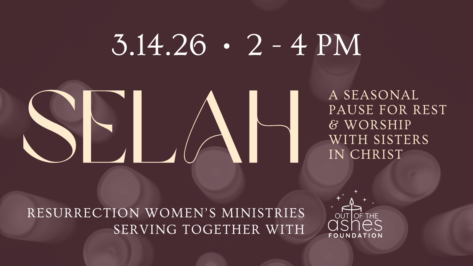 Resurrection Women's Ministries will host an event here at church on Saturday, March 14, from 2-4pm, in which we will pack bereaved Mothers' Day gifts for Out of the Ashes. There will be a time of prayer and worship, also. Look for an evite with all the details!