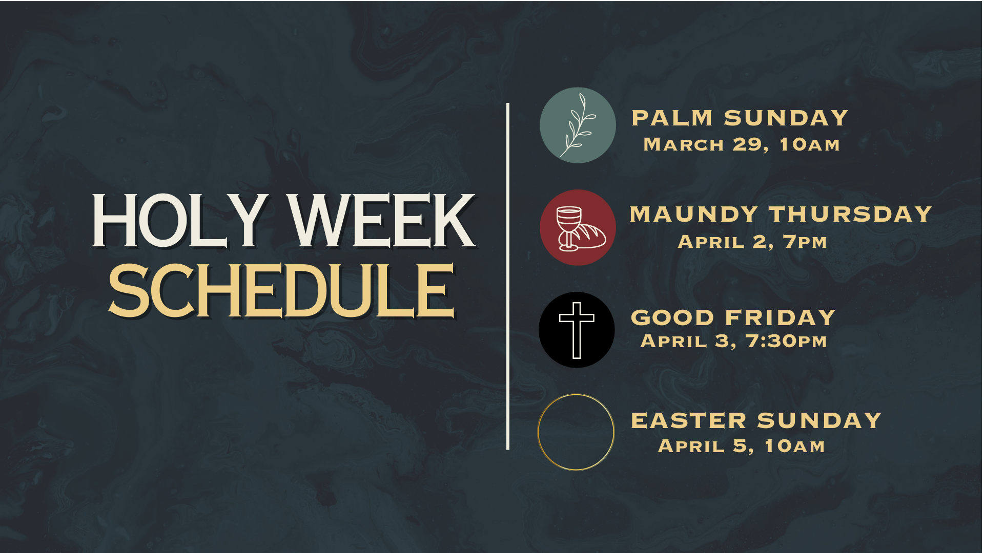 Groups will be guided through stations on a Holy Week Walk from the Triumphal Entry to the Empty Tomb. Families and individuals of all ages are welcome! Click here for more information.