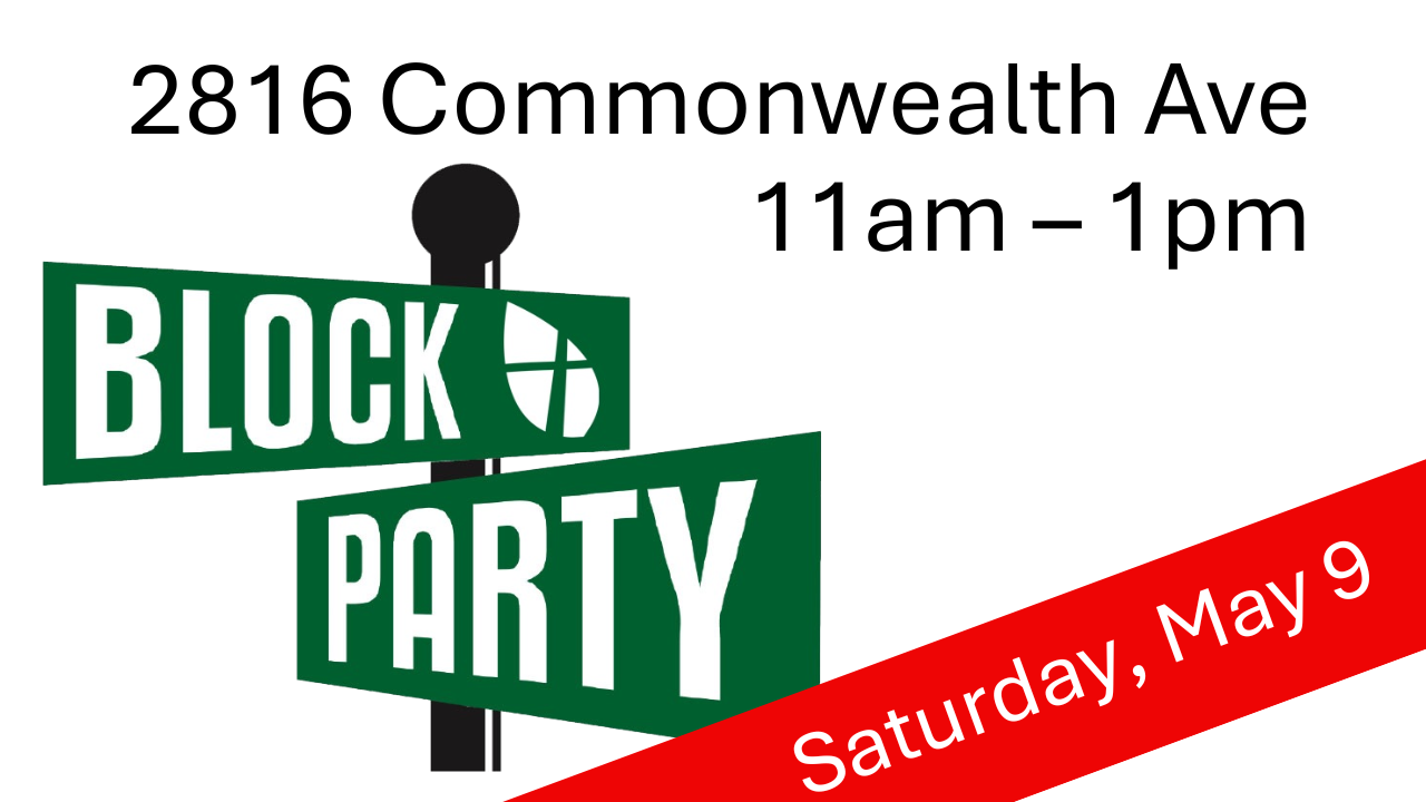 On Saturday, May 9, from 11am-1pm, we will host a block party for Commonwealth Park and Commonwealth/Morningside (our two nearest neighborhood associations) There will be food, music, inflatables, and more! Please come out and fellowship with our neighbors, as we bring Jesus to our community. If you can help by volunteering at this event, please contact the church office or see Joanna Duddleston.
